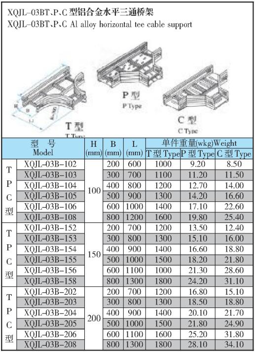 XQJL-03AT、P、C型鋁合金水平三通橋架